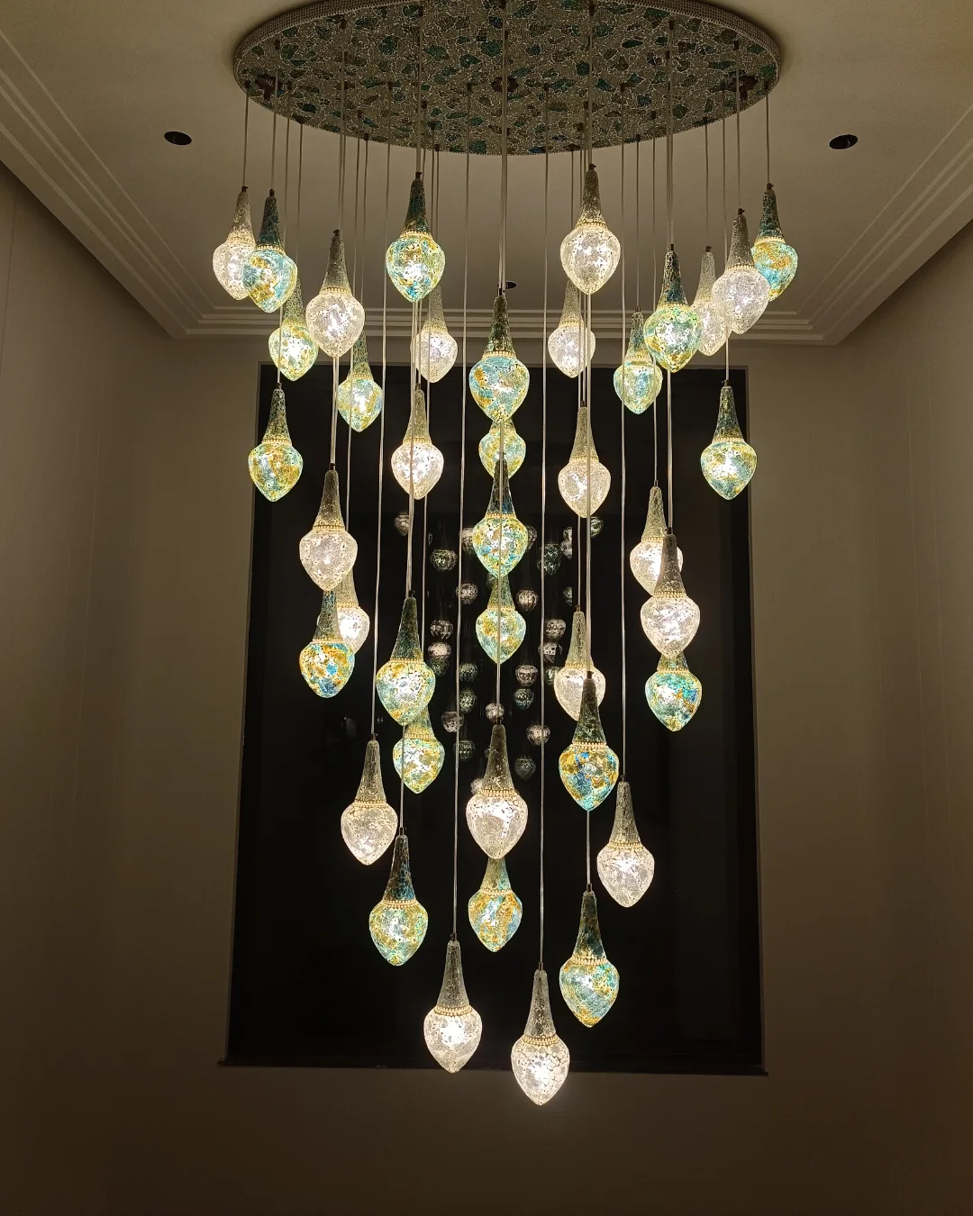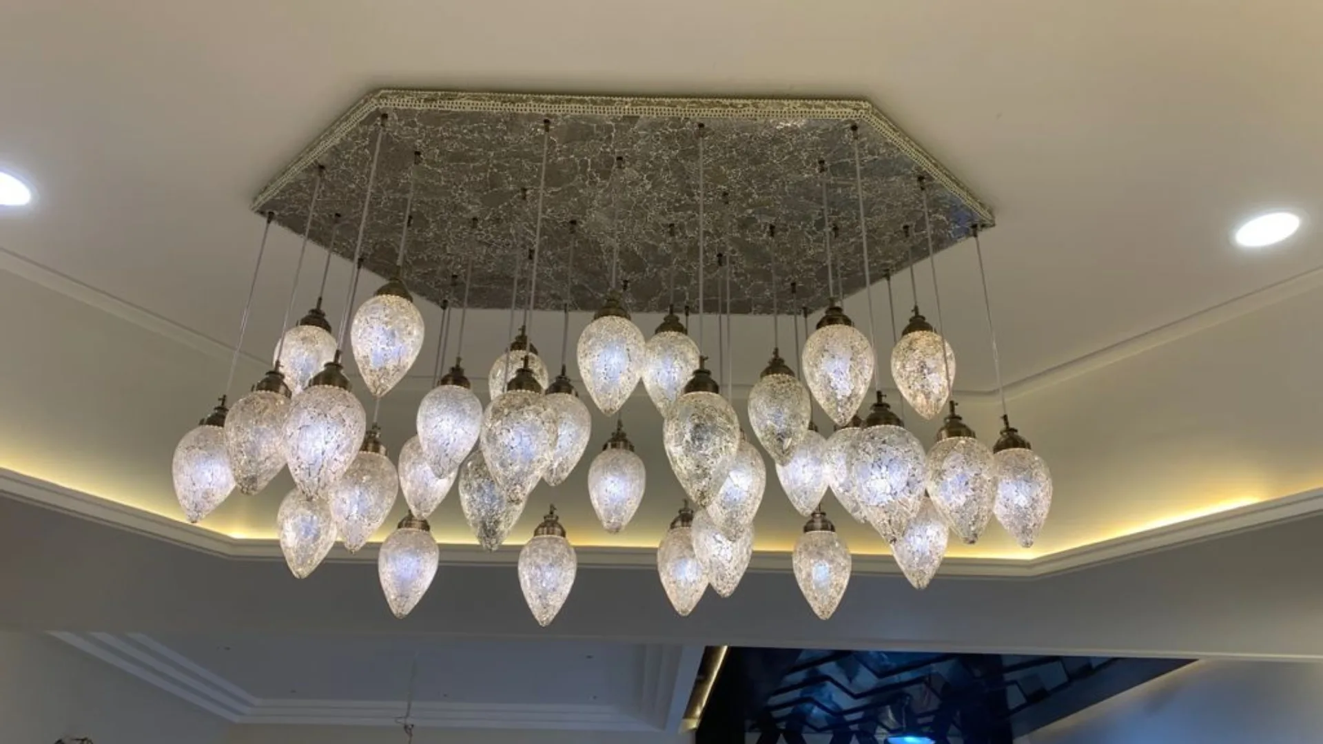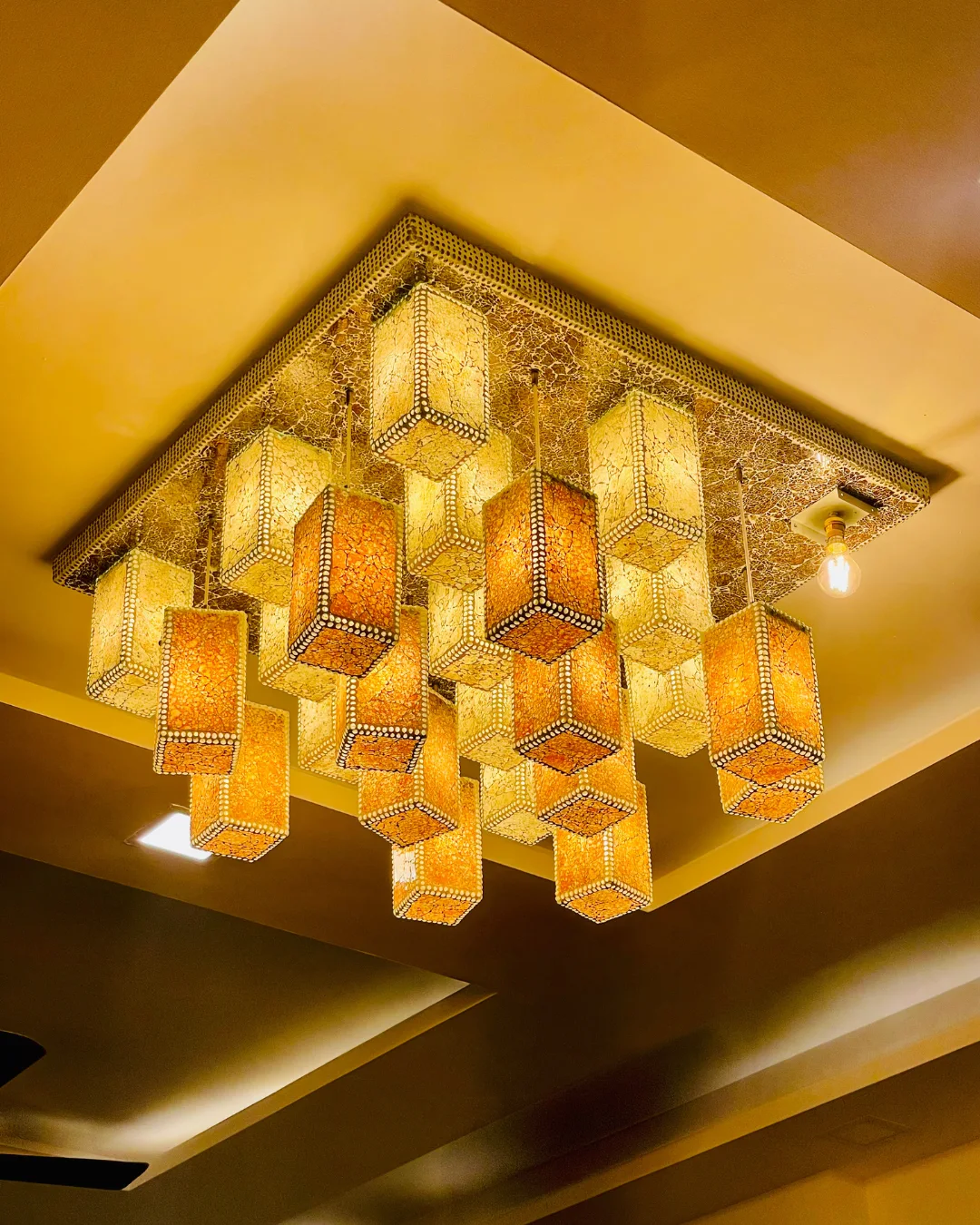 Inspired by the timeless art of mosaic composition, every element is thoughtfully placed to form a luminous structure that feels both architectural and poetic. The result is not merely illumination, but a statement installation that transforms spatial perception.