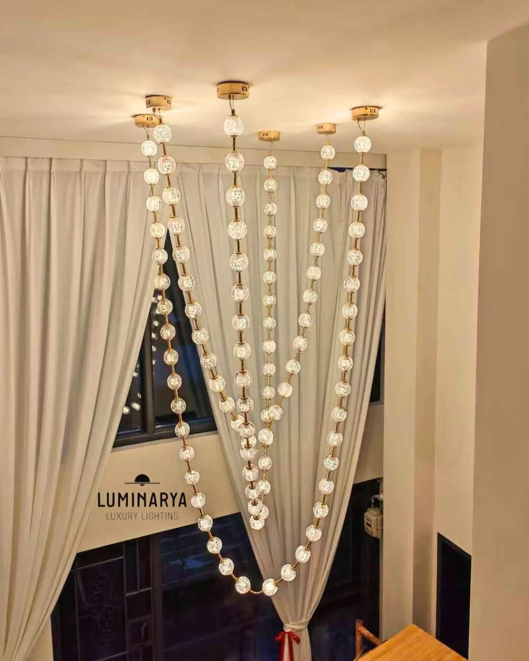 Enhance expansive volumes with vertically scaled chandeliers that balance openness with refined brilliance.