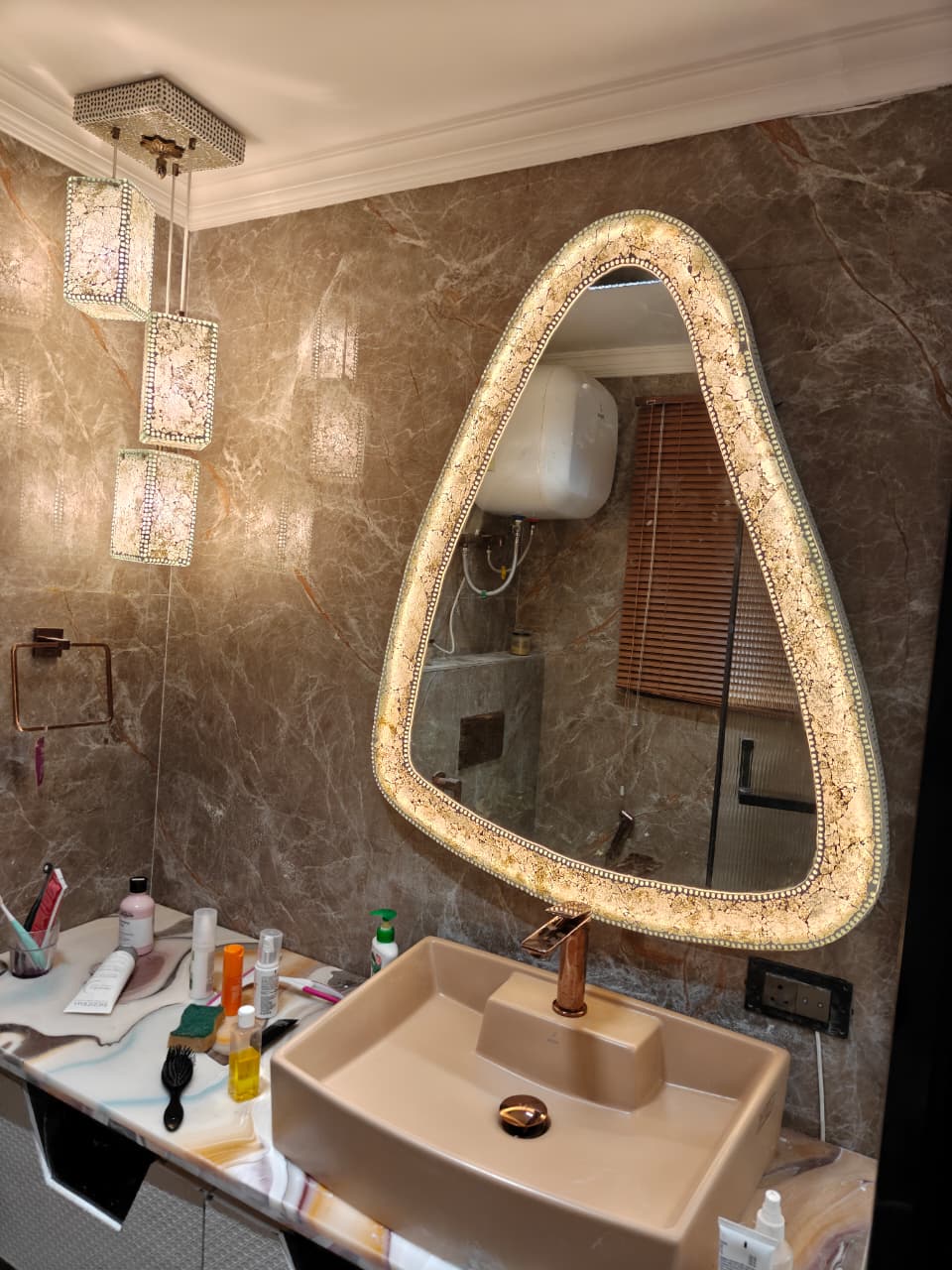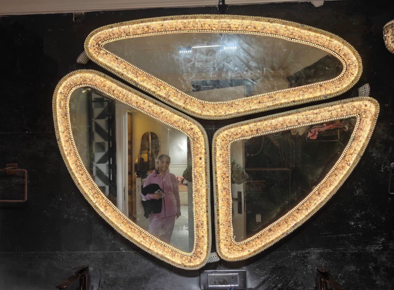 Designed for dressing areas, luxury bathrooms, entrance foyers, and curated interiors, Mosaic personalized mirrors add depth, elegance, and a distinctive luminous character to modern living spaces.